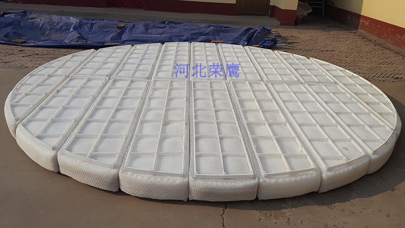 DP型(高效型)絲網除沫器面對材料選擇時,主要考慮操作系統中介質的腐蝕性和操作溫度。不銹鋼絲網除霧器具有良好的機械強度和耐腐蝕性能,并能在較高溫度(≤400℃)下工作。常用的有S30408絲網除沫器,S30403絲網除沫器,S31608絲網除沫器,S31603絲網除沫器,S32168絲網除沫器;合成纖維絲網除沫器能耐多種介質腐蝕,但機械強度小、操作溫度較低(66~77℃,最高為150℃)。常用的有PP(聚丙烯)絲網除沫器,PE(聚乙烯)絲網除沫器,PVC(聚氯乙烯)絲網除沫器,PA(尼龍)絲網除沫器,PTFE(聚四氟乙烯)絲網除沫器。為提高DP型(高效型)絲網除沫器的操作性能和除沫效果,可與金屬絲網交織,形成混編絲網。根據實際使用結果,這種混編絲網具有更高的分離效率。